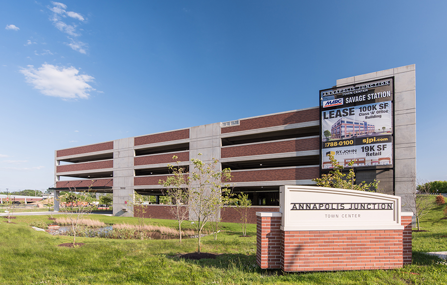 The site includes a rail station for the State of Maryland's MARC commuter rail service. Free parking is available for commuters in a new four-level parking garage providing 704 parking spaces, owned and operated by the intermodal Maryland Department of Transportation.