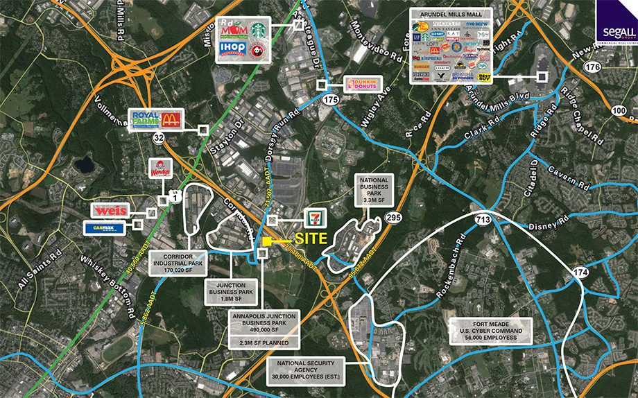 - Over six million square feet of commercial office park space within a mile and a half of the site, with millions more SF of office space at and around the nearby Fort Meade.